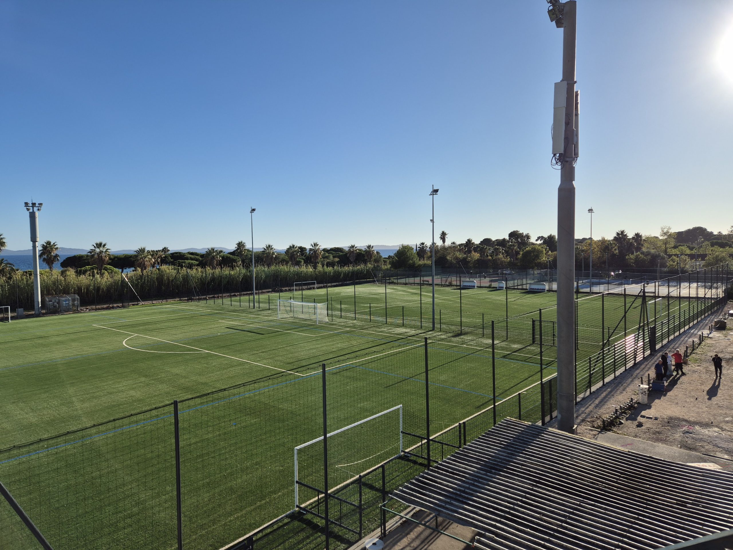 • Pose d’un gazon synthétique F60 aéro, sans couche de souplesse, remplissage liège végétal – 11 700 m²